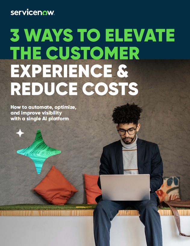 How can you meet customer expectations for speed and convenience, while also lowering costs? Start by empowering your customer service teams with AI. Read this ebook to see how you can proactively address customer issues, reduce inbound calls, and give employees better customer insights, while driving down cost to serve — using ServiceNow’s AI-driven platform.