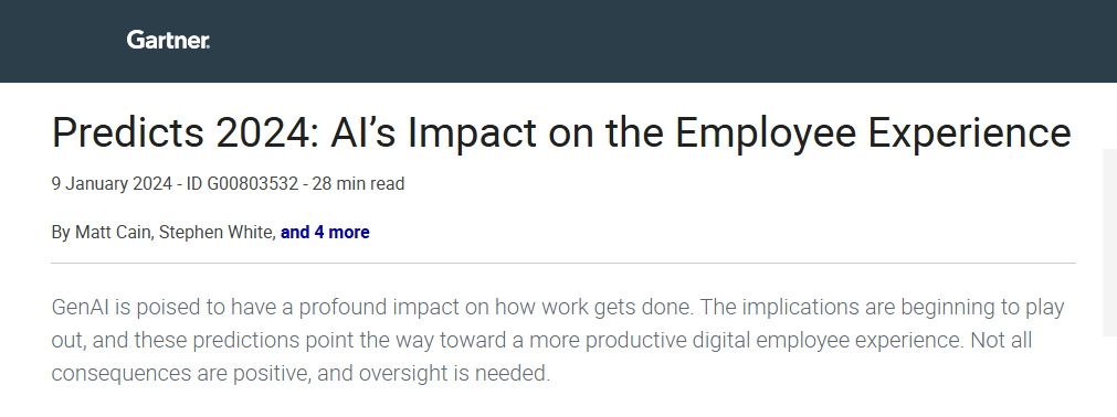 Gartner Predicts 2024: AI’s Impact on the Employee Experience